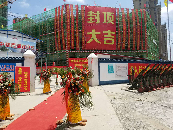 自四年前的今天,中建西部的建設者們在這片空曠的土地上,滿懷希望和神圣使命,舉行了隆重的開工典禮;經過四年時間的建設,今天,中建西部的建設者們在這巍峨挺拔、氣勢恢宏的樓群中,懷著無比喜悅的心情舉行了固鎮多金中心收官之作,S1商業綜合體的封頂儀式。