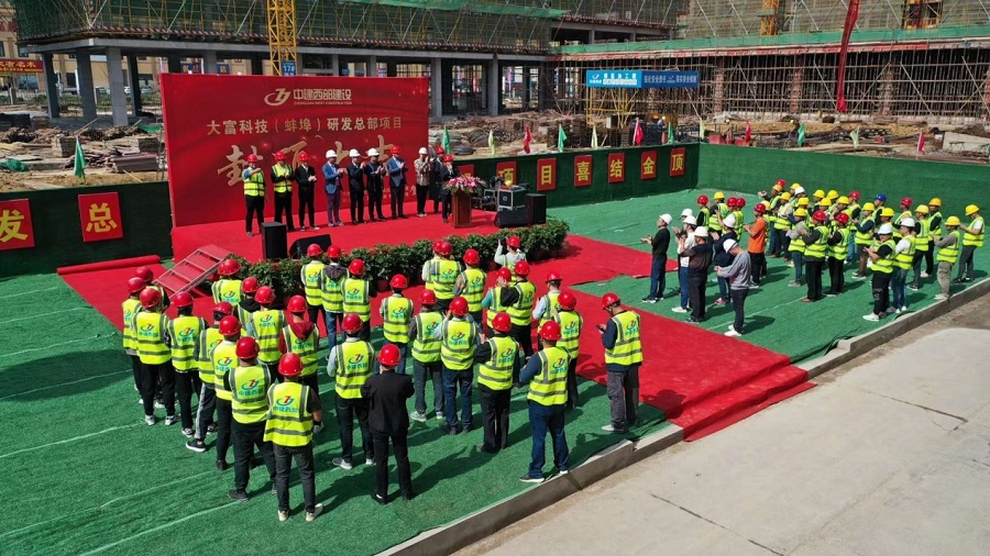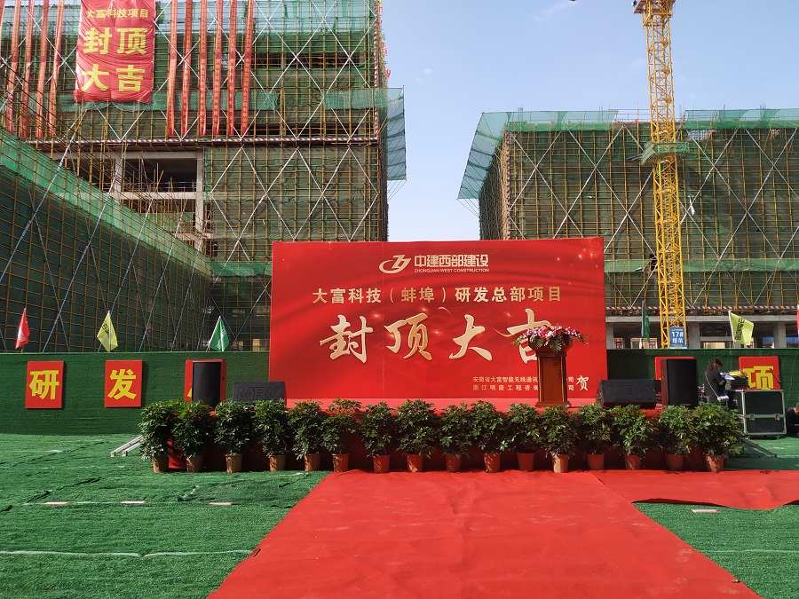 熱烈祝賀大富科技(蚌埠)研發(fā)總部項(xiàng)目順利封頂
