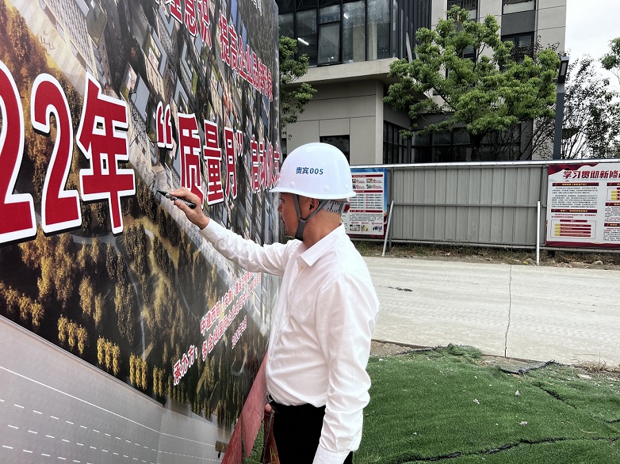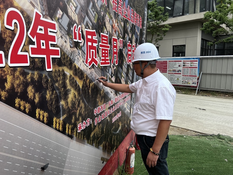 儀式上,中建西部建設集團領導闡述了開展“質量月”活動的重要意義,宣讀了項目部開展2022年“質量月”活動的實施方案,并提出了四點工作要求: 一是周密部署,精心策劃。各單位要進一步樹立“至精”發展理念,增強質量責任意識,圍繞質量月活動實施計劃,因地制宜的開展有成色、有亮點、接地氣的活動。二是不走過場,重心下移。各單位要按照活動的總體要求,充分發揮活動主力軍作用,廣泛動員班組、工人參與,將各項活動落到實處。三是正視問題,立行立改。各單位要以問題為導向,認真檢視質量管理工作中存在的薄弱環節和突出問題,編制問題清單,剖析根源,制定措施,限期整改。四是不斷創新,務求實效。各單位要全方位、多角度開展“質量月”宣傳和策劃活動,力爭把“ 質量月”活動辦成推動質量工作、展示質量成果的平臺,提高“質量月”活動實效。