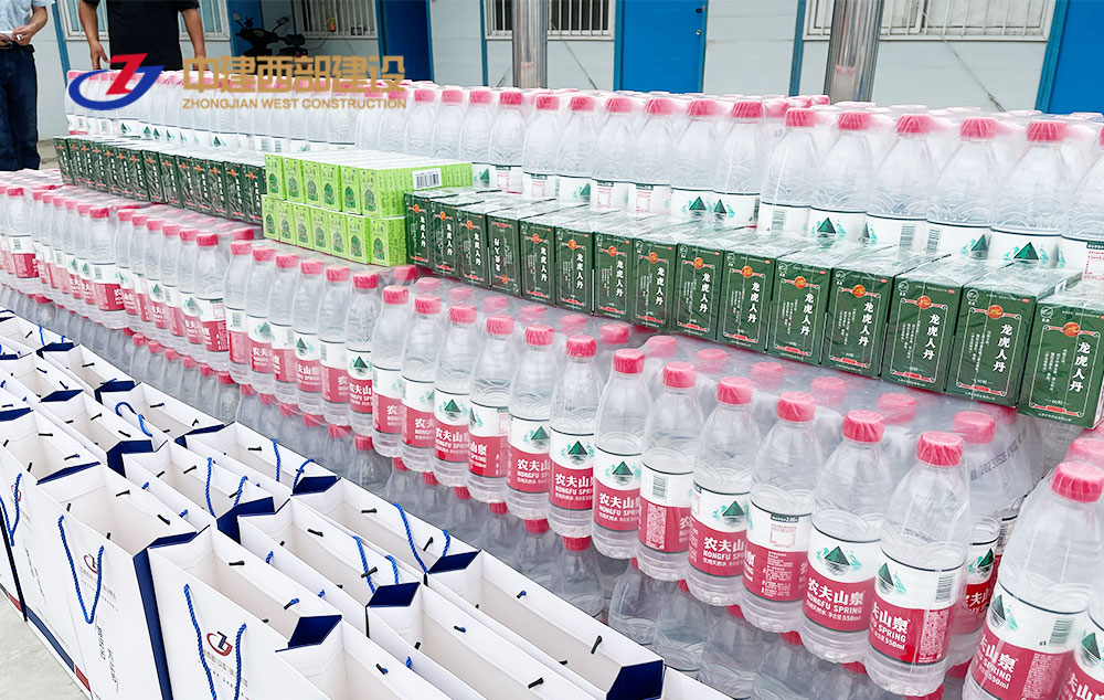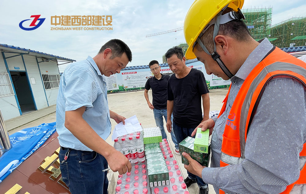 中建西部建設集團以解決工人日常工作中存在的實際需求出發,要求各在建項目負責人要高度重視夏季高溫施工工作,密切關注天氣變化,認真落實夏季高溫施工各項防范措施,把夏季高溫施工和安全生產、質量控制工作落實到每一個項目、每一個班組、每一個作業面,嚴防因高溫等惡劣天氣引發的各類生產安全事故以及質量問題。各項目部要按照氣象部門發布的天氣預報信息,嚴格遵守高溫作業時間要求,合理安排作息時間。同時組織采購人丹、十滴水、風油精、綠豆、毛巾、礦泉水等防暑藥品和降溫日用品,慰問在項目施工現場的一線建筑工人,同時叮囑大家在高溫工作環境下保重身體、注意安全。
