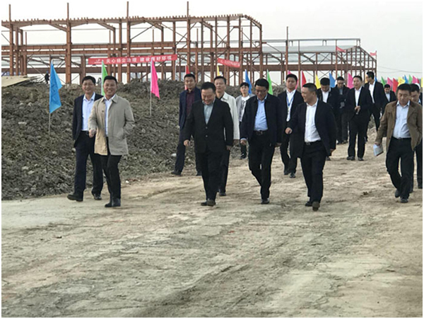 2017年11月1日下午4點30分,省委常委、合肥市委書記宋國權在肥東縣委書記耿延強、肥東縣長孫良鴻、合肥循環經濟示范園主任楊文保及有關部門負責人的陪同下,蒞臨金陽項目建設工地進行實地考察。多金集團董事長劉濰彬、裕陽集團董事長張立軍及中建西部集團高管陪同考察。