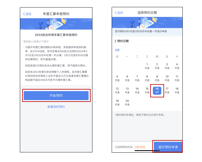 需要說明的是,預(yù)約功能開放時(shí)間為2023年2月16日至3月20日每天的早6點(diǎn)至晚22點(diǎn),納稅人可在上述時(shí)間內(nèi)登錄手機(jī)個(gè)人所得稅APP并預(yù)約3月1日至3月20日的年度匯算申報(bào)。