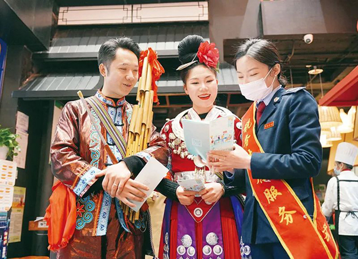 今年以來,稅務(wù)部門優(yōu)化實(shí)施小規(guī)模納稅人減征增值稅、小微企業(yè)和個(gè)體工商戶減征所得稅等一批覆蓋面更廣的政策,突出對(duì)小微企業(yè)、個(gè)體工商戶的支持。圖為2023年3月16日,國(guó)家稅務(wù)總局貴陽市南明區(qū)稅務(wù)局干部走進(jìn)當(dāng)?shù)貒?guó)家非遺項(xiàng)目酸湯魚餐飲店,講解稅收優(yōu)惠政策。 國(guó)家稅務(wù)總局供圖 梁詩茂/攝